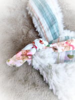 Doudou fourrure écrue polyester extra-moelleuse et double gaze de coton.